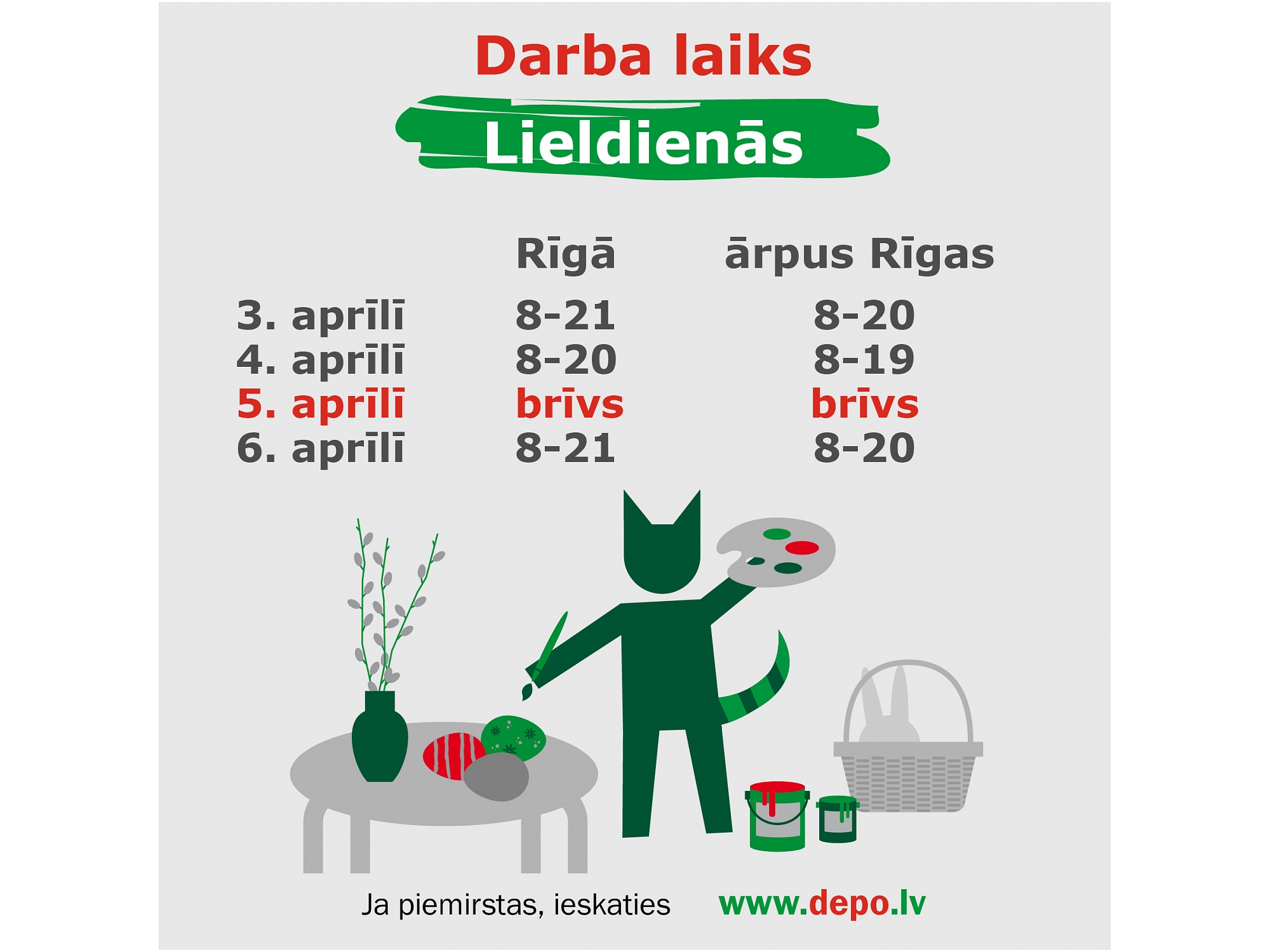 Darba laiks Lieldienās! Rīgā: 03.04.2026. - 08:00-21:00; 04.04.2026. - 08:00-20:00; 05.04.2026. - Brīvs; 06.04.2026. - 08:00-21:00. Ārpus Rīgas: 03.04.2026. - 08:00-20:00; 04.04.2026. - 08:00-19:00; 05.04.2026. - Brīvs; 06.04.2026. - 08:00-20:00.Atsauksmes