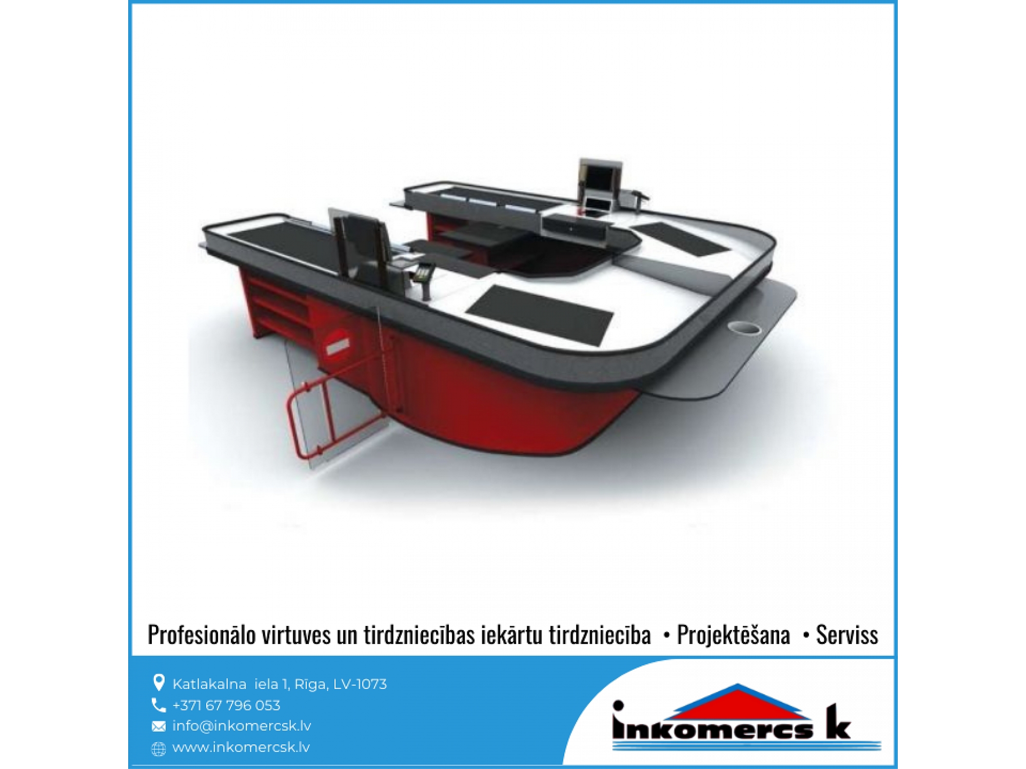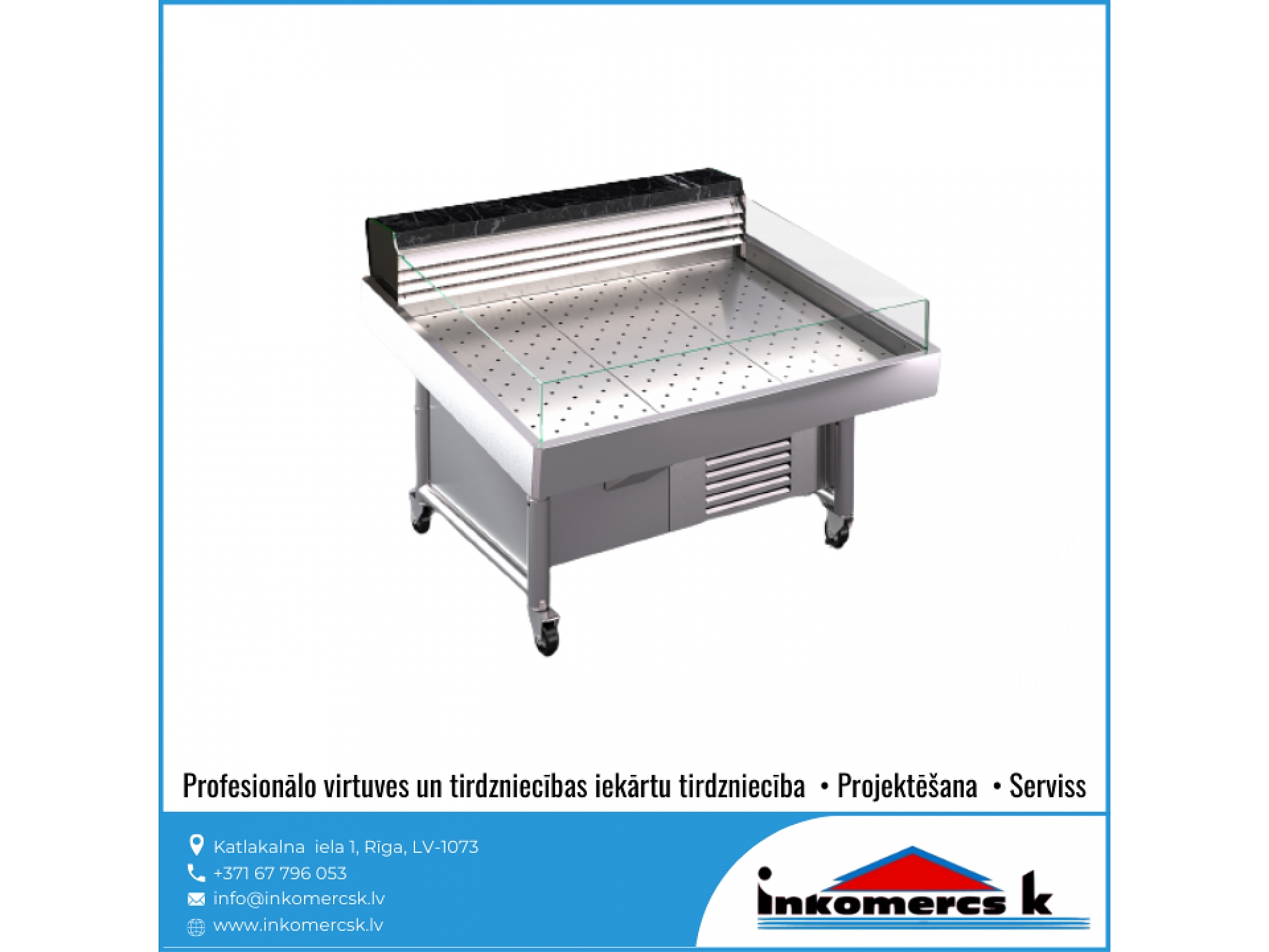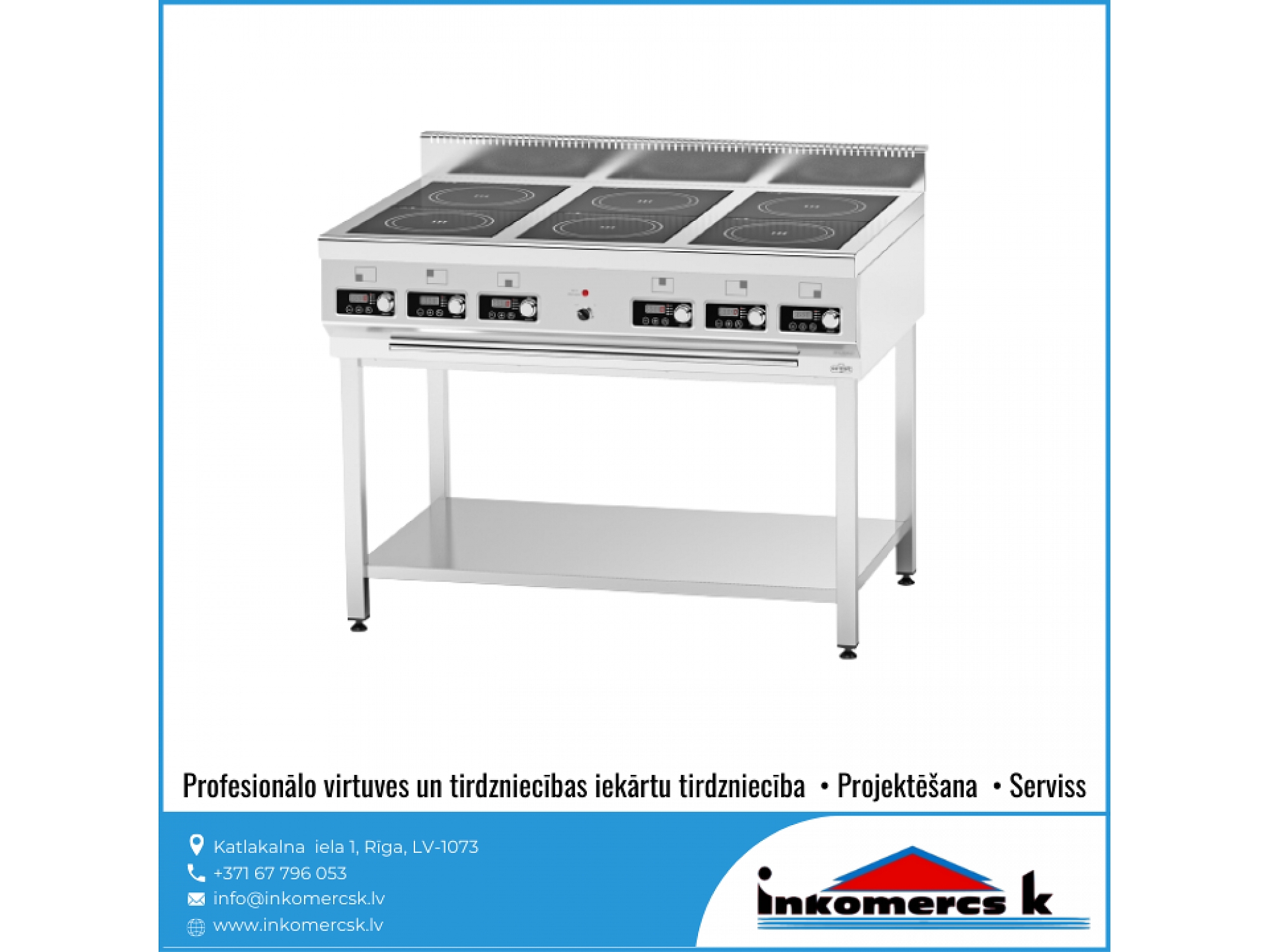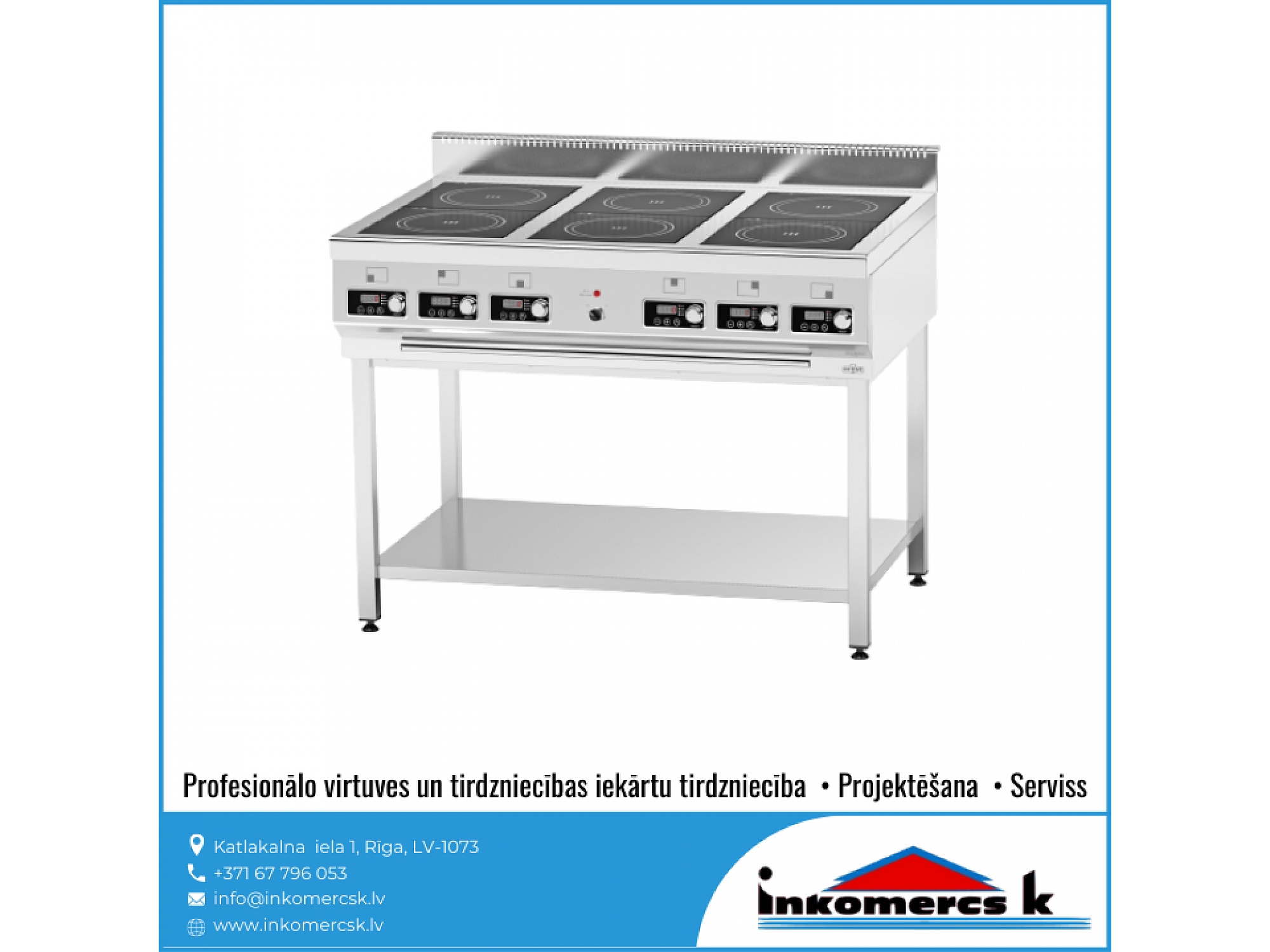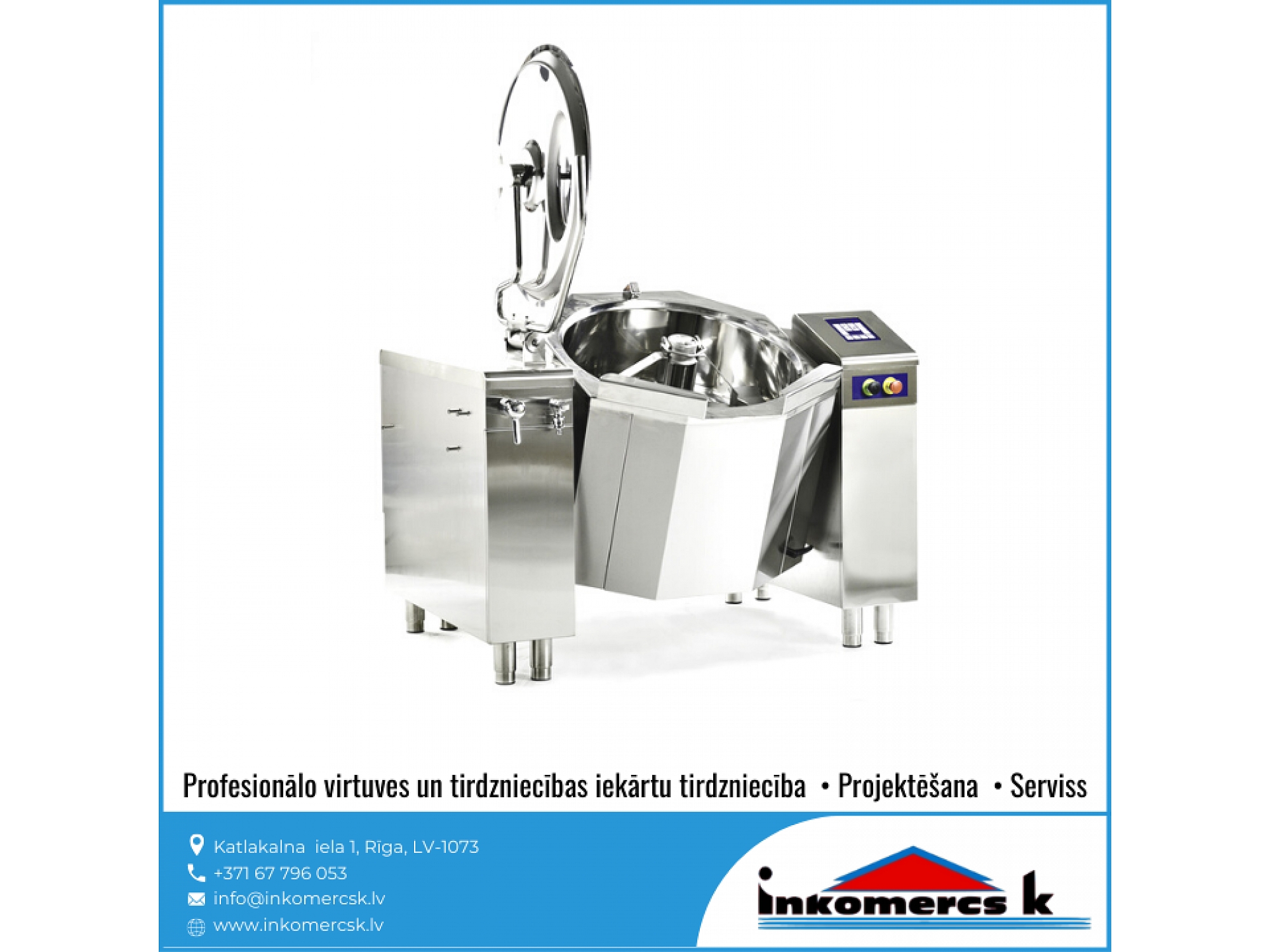 "Inkomercs K" piedāvā plašu profesionālās virtuves un tirdzniecības iekārtu sortimentu dažādās cenu kategorijās. Mums ir vairāk nekā 15 gadu pieredze, lai saviem klientiem piedāvātu labāko risinājumu. Mēs konsultējam, projektējam dažāda veida ēdināšanas iestāžu projektus - kafejnīcām, bāriem, ēdnīcām, veikaliem, lielveikaliem, viesnīcām, skolām, bērnudārziem un citiem. Kā arī nodarbojamies ar iekārtu tirdzniecību, montāžu un veicam iekārtu apkalpošanu un servisa darbus. Pie mums ir kvalitātes garantija.