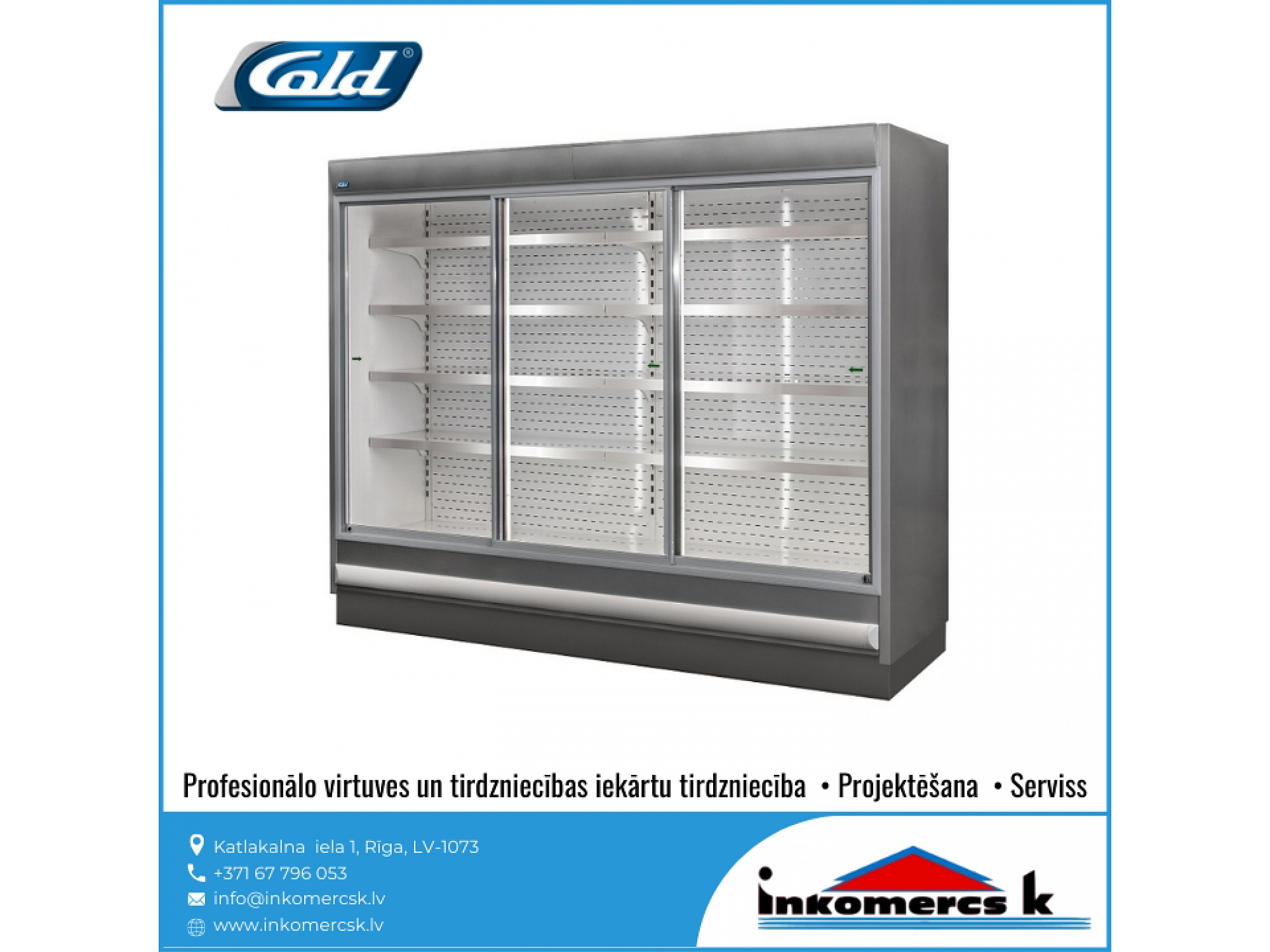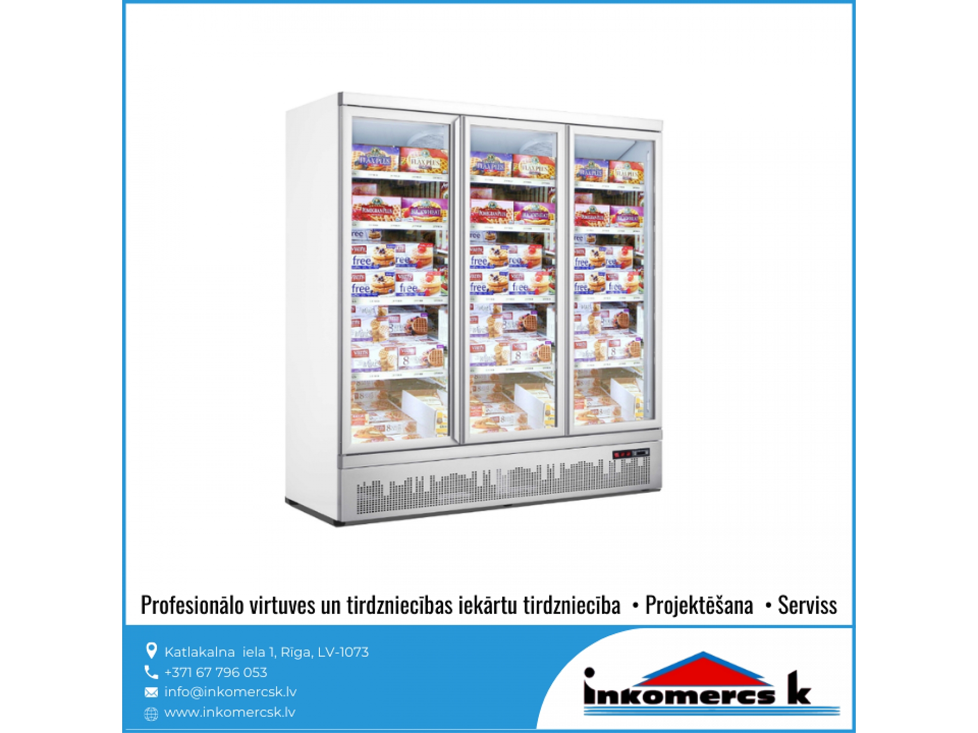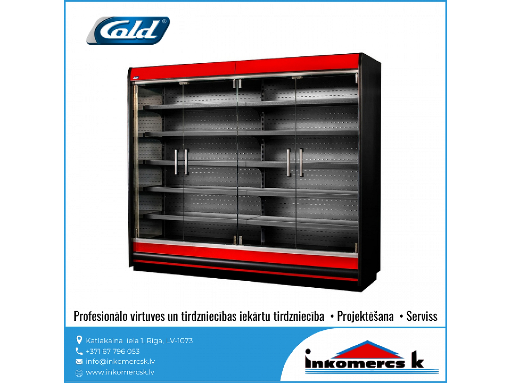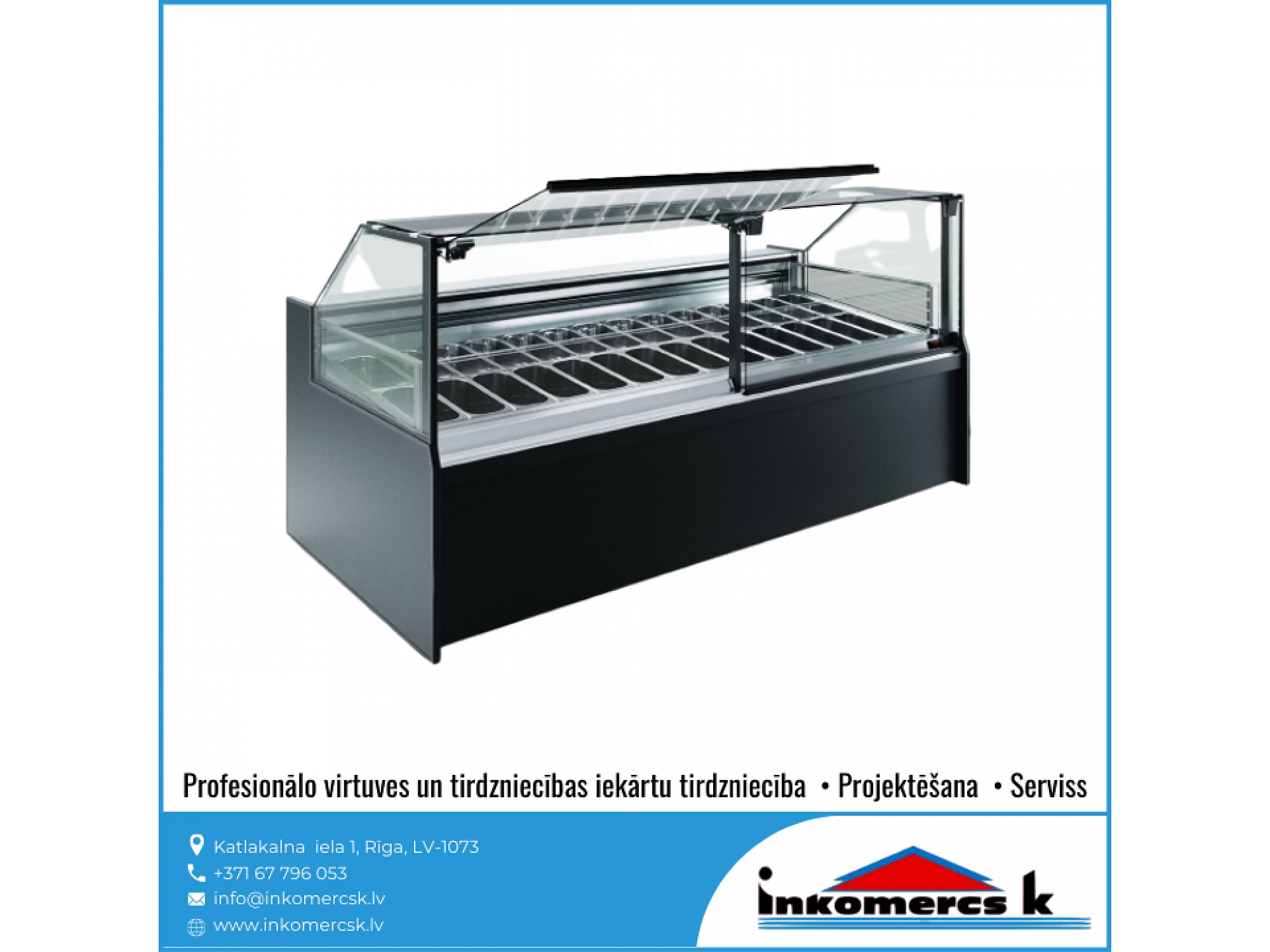 Profesionālās virtuves iekārtas, tirdzniecības iekārtas, pārtikas rūpniecības iekārtas, aukstuma iekārtas, aukstuma vitrīnas, aukstuma skapji, profesionālie ledusskapji, aukstuma kameras, saldēšanas kameras, saldēšanas iekārtu remonts, galda vitrīnas, saldēšanas iekārtas, montāža, saldēšanas iekārtu apkope, saldēšanas iekārtu apkalpošana, freona papildināšana, freona uzpilde, freons, aukstuma agregāti, saldēšanas lādes, vertikālās saldēšanas vitrīnas, horizontālās saldēšanas vitrīnas, konditorejas vitrīnas, vidējas un zemas temperatūras gondolas, saldētavu remonts, gaisa dzesētājs. Aukstuma iekārtu remonts, uzstādīšana, montāža, apkope, apkalpošana. Aukstuma serviss, atdzesēšana, aukstuma tehnika, aukstuma iekārtas veikaliem, gastronomijas vitrīnas, saldētavas, aukstuma galdi, bāra ledusskapji, saldēšanas sistēmas, saldējamās kameras. Saldējamās iekārtas remonts, montāža, uzstādīšana. Gaisa kondicionēšana, kondicionieris, kondicionētāji. Kondicionieru montāža, apkalpošana, remonts, uzstādīšana, pārdošana, tirdzniecība. Veikalu aprīkojums, letes, iekārtas, plaukti. Bāra letes, pārtikas veikalu iekārtošana, bāra, kafejnīcu aprīkojums, pārtikas rūpniecības tehnika un iekārtas, siltuma vitrīnas, apkalpošanas un tirdzniecības tehnika, ēdināšanas uzņēmumu iekārtas un piederumi, nerūsējošā tērauda mēbeles, restorānu mēbeles, bāru mēbeles, trauku mazgājamās mašīnas, rūpnieciskās veļas mašīnas, fast food iekārtas, ātrās ēdināšanas iekārtas un aprīkojums, horizontālās aukstuma vitrīnas, aukstuma iekārtu rezerves daļas, dzesētavas. Dzesēšanas iekārtas, kameras, sistēmas. Refrižeratori, sendviča paneļi, sendviča tipa paneļi, freons R-134a, r-22, r-404a, r-410a, r-407C, r-422d, profesionālās trauku mazgājamās mašīnas, tērauda virtuves mēbeles, profesionālās tehnikas remonts. Tehnoloģiskās iekārtas ēdināšanas uzņēmumiem, restorāniem, kafejnīcām, picērijām, kulinārijas, konditorijas cehiem. Viss ielas tirdzniecībai: piekabes, ratiņi, saliekamās bāra letes, siltumiekārtas, plītis, grili, cepeškrāsnis. Profesionālais aprīkojums virtuvēm, ēdnīcām, profesionālās gaļas maļamās mašīnas, virtuļu panna, elektriskie zupas katli, profesionālās elektriskās plītis, kartupeļu mizotājs, ledusskapji ar stikla durvīm, servēšanas ratiņi, aukstuma vitrīnas ziediem, hotdogu pagatavošanas aparāti, mēbeles bāriem un restorāniem, saldēšanas agregāti, aukstuma centrāles, rūpnieciskās gaļas maļamās mašīnas, Baltkrievijas gaļas maļamās mašīnas, ēdināšanas iestāžu profesionālās iekārtas, ēdināšanas uzņēmuma virtuves iekārtas, gaļas maļamās mašīnas ēdnīcām, Unger, Valross, sastatnes, šokfrīzeri, fritīri, mehāniskās iekārtas, profesionālās virtuves projektēšana, ledusskapji, sulu spiedes, dzesētāji, mehāniskās gaļas mašīnas, mikseri, kafijas automāti, metāla galdi, skapji, ēdienu izdales līnijas, tvaika nosūcēji, ledus ģeneratori, grandus, plaukti, vīna skapji, izgatavošana pēc individuālā pasūtījuma, elektriskās un gāzes plītis, cepšanas virsmas, fritēzes, makaronu vārītāji, stacionārie vārīšanas katli, izgāžamie vārīšanas katli, apgāžamās pannas, gāzes, elektriskie grili, konvekciju krāsnis, kūpinātavas, mikroviļņu, krāsnis ar grilu, ar konvekciju, siltuma skapji, Valros, Salamandri, indukcijas cepamvirsmas, vidējas temperatūras aukstuma skapji, zemas temperatūras aukstuma skapji, picas galdi, split sistēmas, aukstuma monobloki, aukstās sadales letes, profesionālie virtuves galdi, galdi pie trauku mazgājamajām mašīnām, iekārtu paliktņi, sastatņi, bāra aprīkojums, sadales līnijas,izsniegšanas līnijas, iekārtas dārzeņu apstrādei, gaļas apstrādei. Dārzeņu un augu apstrādes, dārzeņu mazgājamās, dārzeņu sausēšanas iekārtas. dārzeņu griezēji, kartupeļu tīrāmās mašīnas, maltās gaļas maisītāji, gaļas maļamās mašīnas, gastrošķēlētāji, slaiseri, elektromehāniskās, tirdzniecības letes, karstas vitrīnas, neitrālas vitrīnas, stelāžas, Franko, tirdzniecības pārvietojamās letes. Iekārtas izbraukumu tirdzniecībai, konditorijām, bāriem, kafejnīcām, restorāniem, ceptuvēm. Maizes krāsnis, picas krāsnis, raudzēšanas skapji, mīklas veltnēji, mīklas dalītāji, mīklas mīcītāji, planetārie mikseri, virtuļu gatavošanas iekārtas, virtuļu pagatavošanas ierīces, pankūku aparāti, tosteri, viss bāra vai kafejnīcas aprīkošanai, galda marmīti, Vitrum, blenderi, kokteiļu mikseri, ledus smalcinātāji, elektriskas pannas, rīsu vārāmās iekārtas, termosi, kafijas aparāti, kafijas dzirnaviņas, ūdens dispenseri, bāra kombaini, infrasarkanās gaismas lampas ēdienu, sildīšanai, indukcijas wok pannas. Iekārtas veļas mazgāšanai, veļas mazgātavām, trauku mazgāšanai. Profesionālās veļas mazgājamās mašīnas, žāvēšanas mašīnas, glāžu mazgājamās mašīnas, ROSTUL, kupolveida trauku mazgājamās mašīnas, frontālās trauku mazgājamās mašīnas, projektēšana, noliktavu iekārtas, stendi. Gastrotehnika, stacionārās saldēšanas kameras, pončiku cepšanas automāti, pankūku cepšanas automāti, virtuļu cepšanas automāti, elektriskās iekārtas restorāniem, ēdnīcām, kondicionieru sistēmu remonts, kondicionieru sistēmu apkalpošana, kondicionieru sistēmu serviss, kondicionēšanas sistēmas, tehniskā apkope, profesionālās tehnikas remonts, virtuves tehnikas labošana, rezerves daļu piegāde, serviss, bāru projektēšana, restorānu projektēšana, virtuvju projektēšana, virtuves projektēšana, sabiedriskas ēdināšanas iestāžu projektēšana, bāru darba organizācija, profesionālo virtuvju projektēšana, ZANUSSI, Zanussi Profesional, ELECTROLUX, Electrolux Professional, Modular, Abat, Master Grill, 
