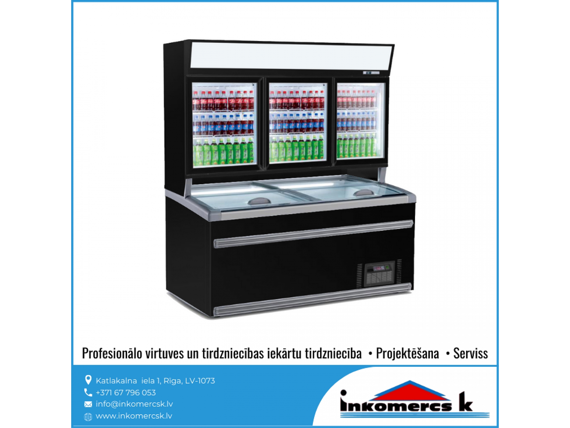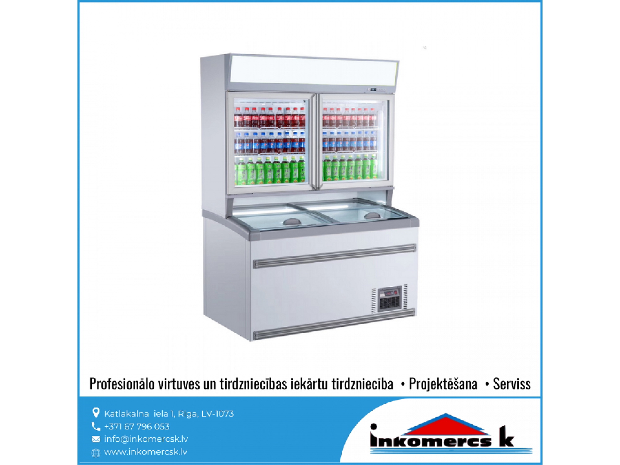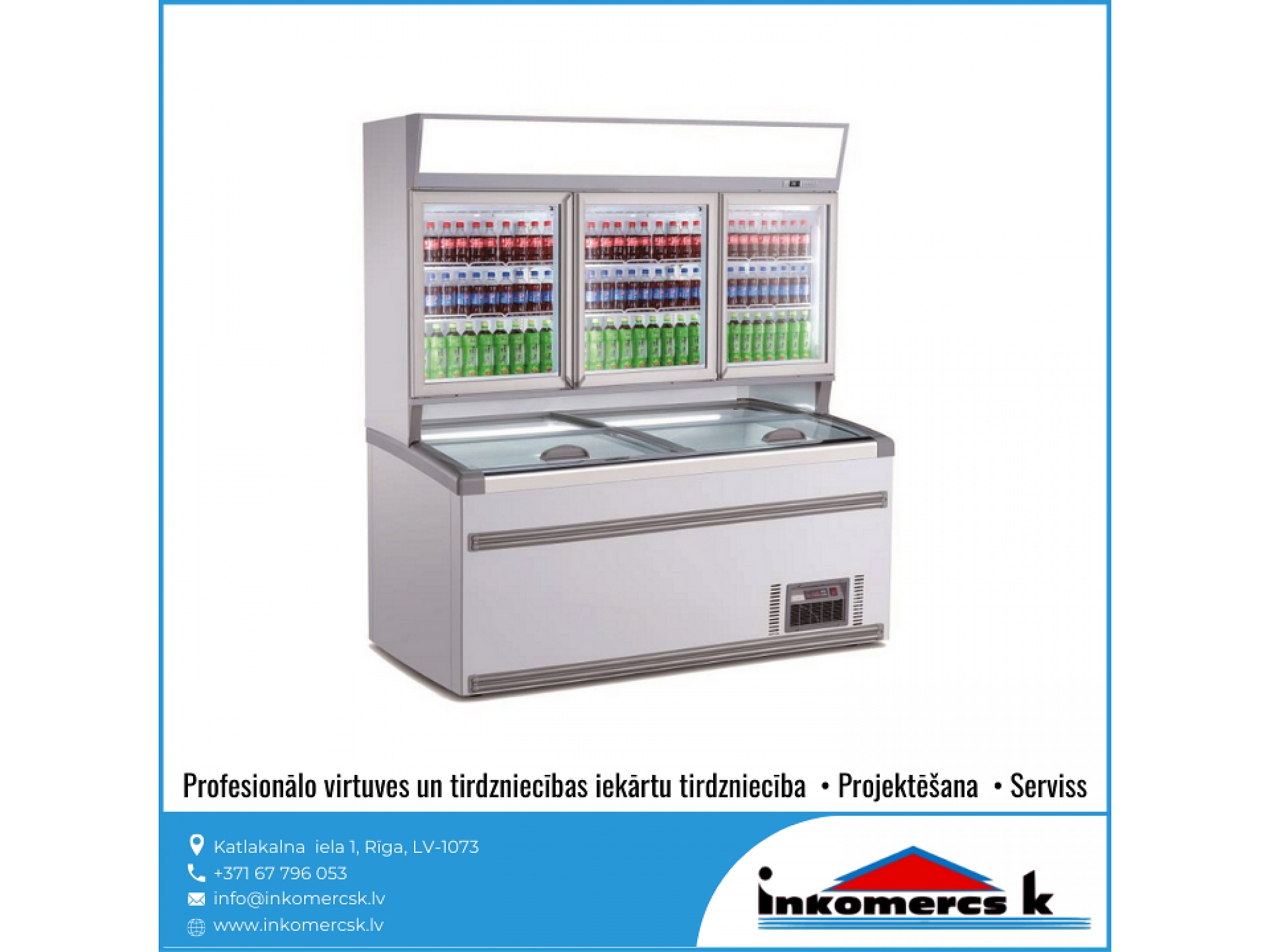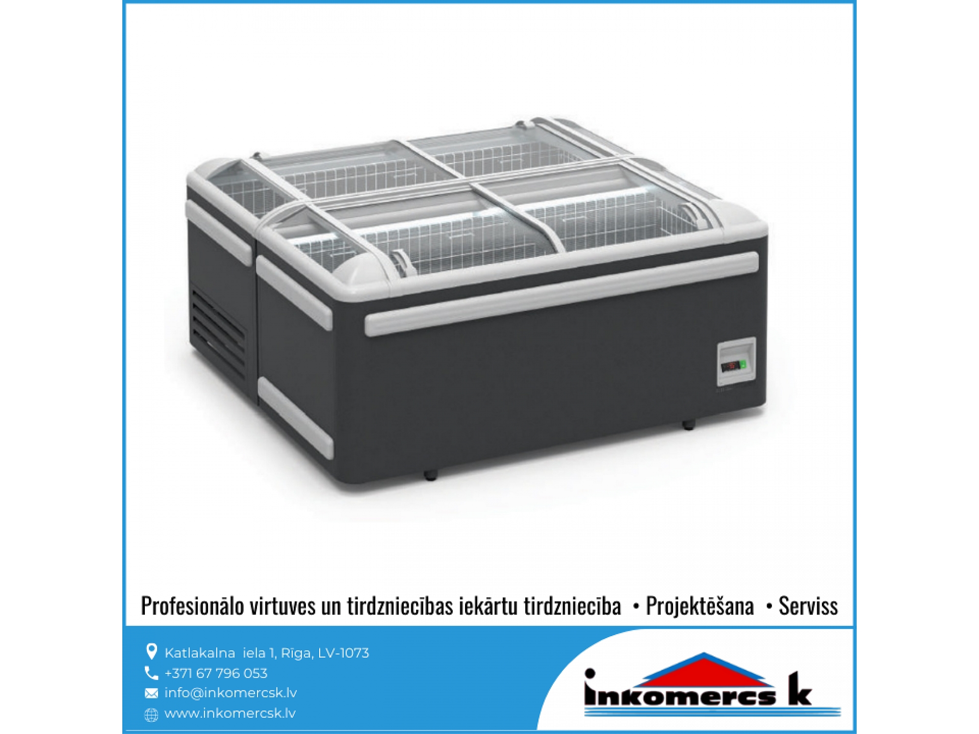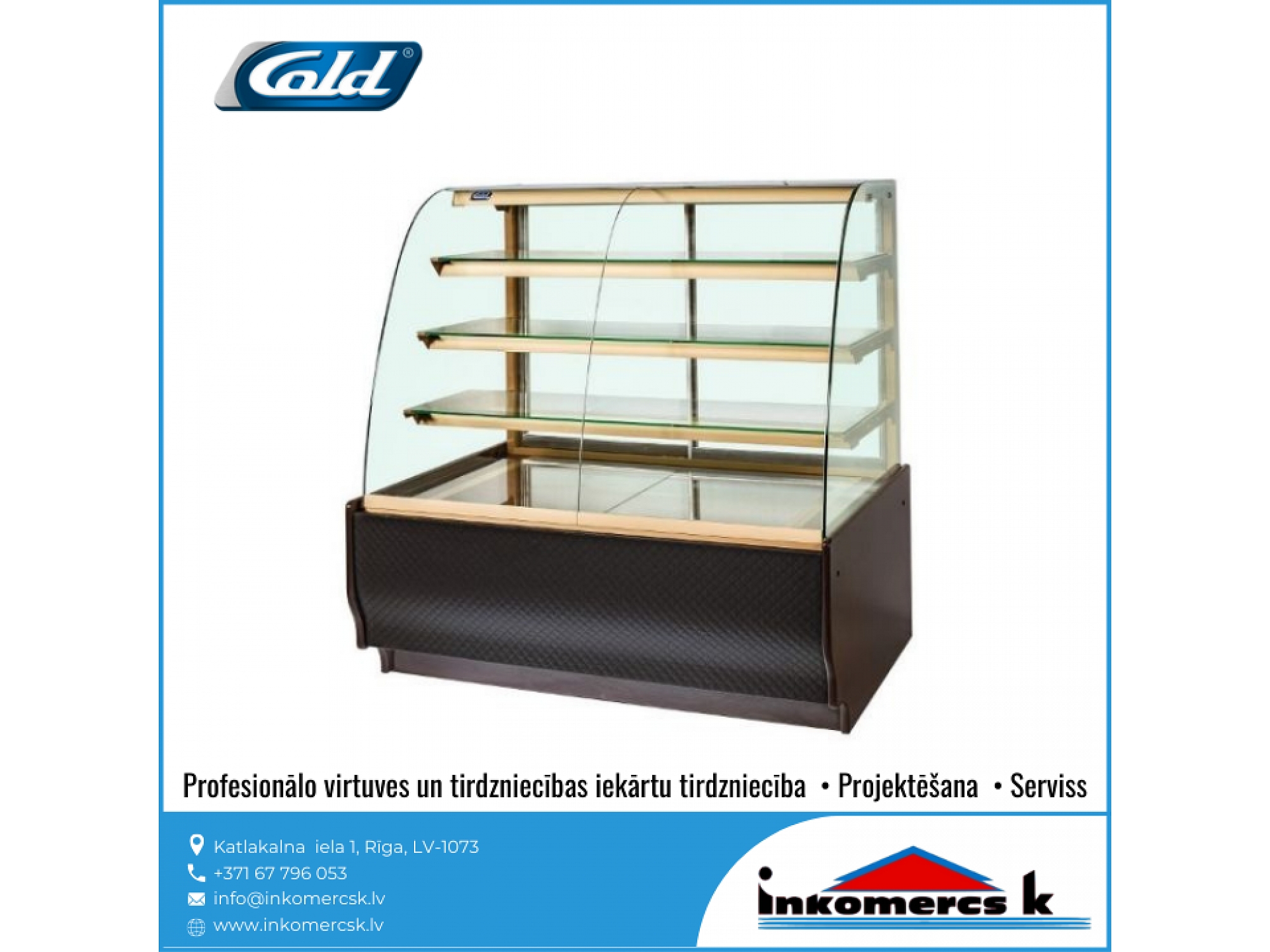 Profesionālās virtuves iekārtas, tirdzniecības iekārtas, pārtikas rūpniecības iekārtas, aukstuma iekārtas, aukstuma vitrīnas, aukstuma skapji, profesionālie ledusskapji, aukstuma kameras, saldēšanas kameras, saldēšanas iekārtu remonts, galda vitrīnas, saldēšanas iekārtas, montāža, saldēšanas iekārtu apkope, saldēšanas iekārtu apkalpošana, freona papildināšana, freona uzpilde, freons, aukstuma agregāti, saldēšanas lādes, vertikālās saldēšanas vitrīnas, horizontālās saldēšanas vitrīnas, konditorejas vitrīnas, vidējas un zemas temperatūras gondolas, saldētavu remonts, gaisa dzesētājs. Aukstuma iekārtu remonts, uzstādīšana, montāža, apkope, apkalpošana. Aukstuma serviss, atdzesēšana, aukstuma tehnika, aukstuma iekārtas veikaliem, gastronomijas vitrīnas, saldētavas, aukstuma galdi, bāra ledusskapji, saldēšanas sistēmas, saldējamās kameras. Saldējamās iekārtas remonts, montāža, uzstādīšana. Gaisa kondicionēšana, kondicionieris, kondicionētāji. Kondicionieru montāža, apkalpošana, remonts, uzstādīšana, pārdošana, tirdzniecība. Veikalu aprīkojums, letes, iekārtas, plaukti. Bāra letes, pārtikas veikalu iekārtošana, bāra, kafejnīcu aprīkojums, pārtikas rūpniecības tehnika un iekārtas, siltuma vitrīnas, apkalpošanas un tirdzniecības tehnika, ēdināšanas uzņēmumu iekārtas un piederumi, nerūsējošā tērauda mēbeles, restorānu mēbeles, bāru mēbeles, trauku mazgājamās mašīnas, rūpnieciskās veļas mašīnas, fast food iekārtas, ātrās ēdināšanas iekārtas un aprīkojums, horizontālās aukstuma vitrīnas, aukstuma iekārtu rezerves daļas, dzesētavas. Dzesēšanas iekārtas, kameras, sistēmas. Refrižeratori, sendviča paneļi, sendviča tipa paneļi, freons R-134a, r-22, r-404a, r-410a, r-407C, r-422d, profesionālās trauku mazgājamās mašīnas, tērauda virtuves mēbeles, profesionālās tehnikas remonts. Tehnoloģiskās iekārtas ēdināšanas uzņēmumiem, restorāniem, kafejnīcām, picērijām, kulinārijas, konditorijas cehiem. Viss ielas tirdzniecībai: piekabes, ratiņi, saliekamās bāra letes, siltumiekārtas, plītis, grili, cepeškrāsnis. Profesionālais aprīkojums virtuvēm, ēdnīcām, profesionālās gaļas maļamās mašīnas, virtuļu panna, elektriskie zupas katli, profesionālās elektriskās plītis, kartupeļu mizotājs, ledusskapji ar stikla durvīm, servēšanas ratiņi, aukstuma vitrīnas ziediem, hotdogu pagatavošanas aparāti, mēbeles bāriem un restorāniem, saldēšanas agregāti, aukstuma centrāles, rūpnieciskās gaļas maļamās mašīnas, Baltkrievijas gaļas maļamās mašīnas, ēdināšanas iestāžu profesionālās iekārtas, ēdināšanas uzņēmuma virtuves iekārtas, gaļas maļamās mašīnas ēdnīcām, Unger, Valross, sastatnes, šokfrīzeri, fritīri, mehāniskās iekārtas, profesionālās virtuves projektēšana, ledusskapji, sulu spiedes, dzesētāji, mehāniskās gaļas mašīnas, mikseri, kafijas automāti, metāla galdi, skapji, ēdienu izdales līnijas, tvaika nosūcēji, ledus ģeneratori, grandus, plaukti, vīna skapji, izgatavošana pēc individuālā pasūtījuma, elektriskās un gāzes plītis, cepšanas virsmas, fritēzes, makaronu vārītāji, stacionārie vārīšanas katli, izgāžamie vārīšanas katli, apgāžamās pannas, gāzes, elektriskie grili, konvekciju krāsnis, kūpinātavas, mikroviļņu, krāsnis ar grilu, ar konvekciju, siltuma skapji, Valros, Salamandri, indukcijas cepamvirsmas, vidējas temperatūras aukstuma skapji, zemas temperatūras aukstuma skapji, picas galdi, split sistēmas, aukstuma monobloki, aukstās sadales letes, profesionālie virtuves galdi, galdi pie trauku mazgājamajām mašīnām, iekārtu paliktņi, sastatņi, bāra aprīkojums, sadales līnijas,izsniegšanas līnijas, iekārtas dārzeņu apstrādei, gaļas apstrādei. Dārzeņu un augu apstrādes, dārzeņu mazgājamās, dārzeņu sausēšanas iekārtas. dārzeņu griezēji, kartupeļu tīrāmās mašīnas, maltās gaļas maisītāji, gaļas maļamās mašīnas, gastrošķēlētāji, slaiseri, elektromehāniskās, tirdzniecības letes, karstas vitrīnas, neitrālas vitrīnas, stelāžas, Franko, tirdzniecības pārvietojamās letes. Iekārtas izbraukumu tirdzniecībai, konditorijām, bāriem, kafejnīcām, restorāniem, ceptuvēm. Maizes krāsnis, picas krāsnis, raudzēšanas skapji, mīklas veltnēji, mīklas dalītāji, mīklas mīcītāji, planetārie mikseri, virtuļu gatavošanas iekārtas, virtuļu pagatavošanas ierīces, pankūku aparāti, tosteri, viss bāra vai kafejnīcas aprīkošanai, galda marmīti, Vitrum, blenderi, kokteiļu mikseri, ledus smalcinātāji, elektriskas pannas, rīsu vārāmās iekārtas, termosi, kafijas aparāti, kafijas dzirnaviņas, ūdens dispenseri, bāra kombaini, infrasarkanās gaismas lampas ēdienu, sildīšanai, indukcijas wok pannas. Iekārtas veļas mazgāšanai, veļas mazgātavām, trauku mazgāšanai. Profesionālās veļas mazgājamās mašīnas, žāvēšanas mašīnas, glāžu mazgājamās mašīnas, ROSTUL, kupolveida trauku mazgājamās mašīnas, frontālās trauku mazgājamās mašīnas, projektēšana, noliktavu iekārtas, stendi. Gastrotehnika, stacionārās saldēšanas kameras, pončiku cepšanas automāti, pankūku cepšanas automāti, virtuļu cepšanas automāti, elektriskās iekārtas restorāniem, ēdnīcām, kondicionieru sistēmu remonts, kondicionieru sistēmu apkalpošana, kondicionieru sistēmu serviss, kondicionēšanas sistēmas, tehniskā apkope, profesionālās tehnikas remonts, virtuves tehnikas labošana, rezerves daļu piegāde, serviss, bāru projektēšana, restorānu projektēšana, virtuvju projektēšana, virtuves projektēšana, sabiedriskas ēdināšanas iestāžu projektēšana, bāru darba organizācija, profesionālo virtuvju projektēšana, ZANUSSI, Zanussi Profesional, ELECTROLUX, Electrolux Professional, Modular, Abat, Master Grill, 