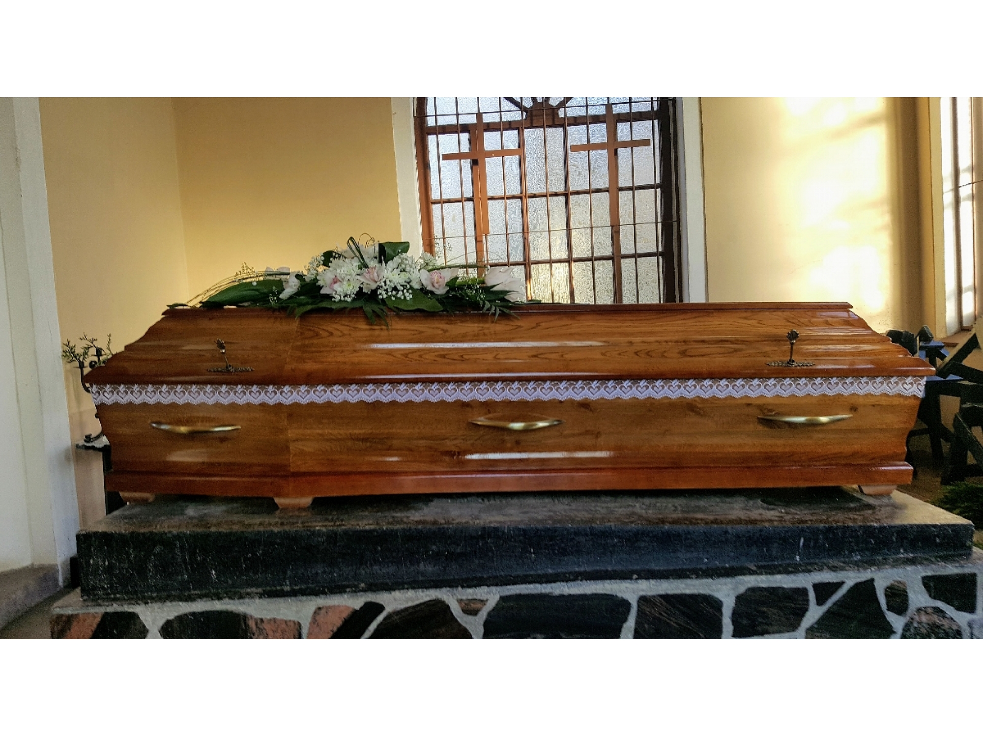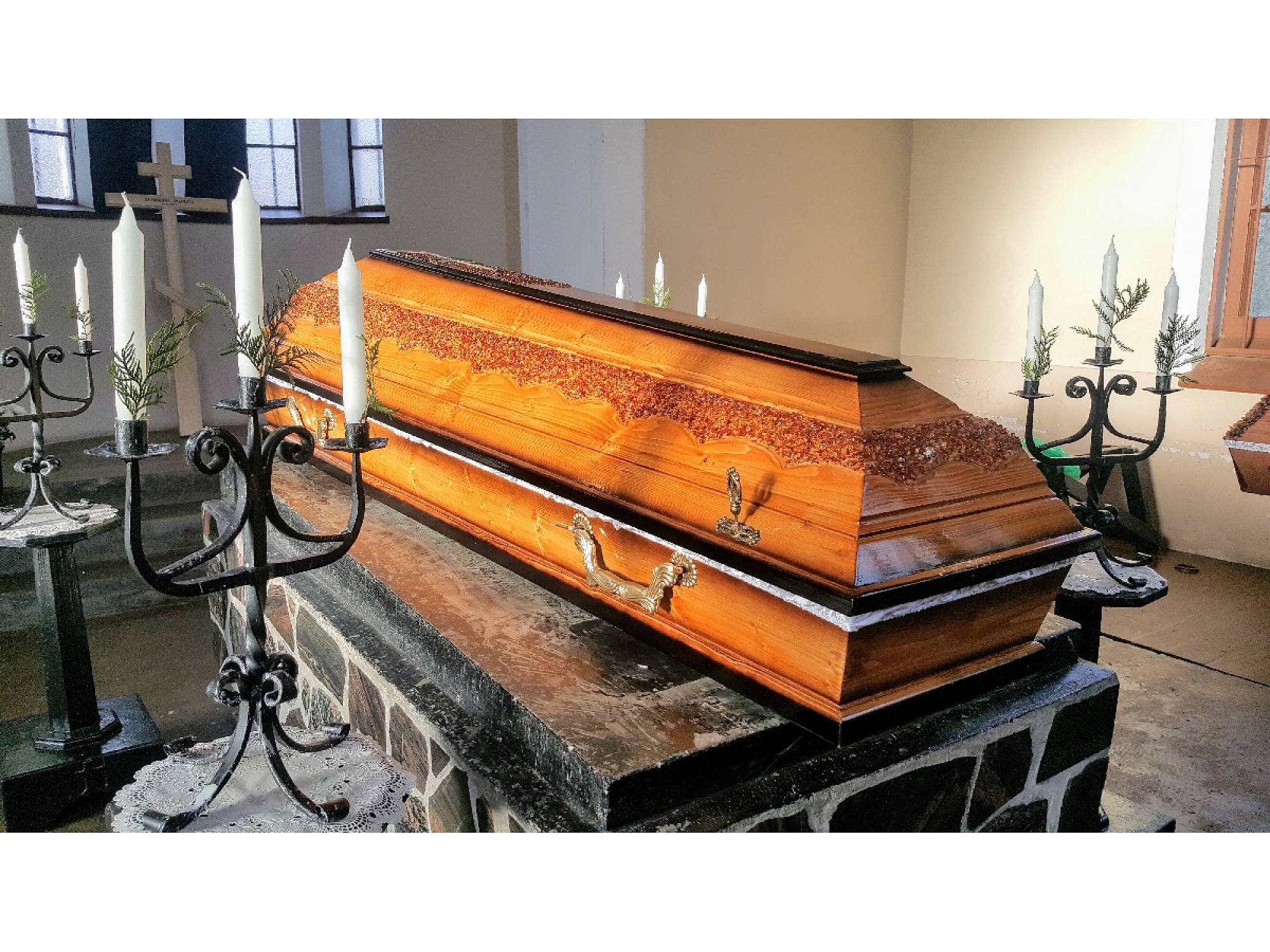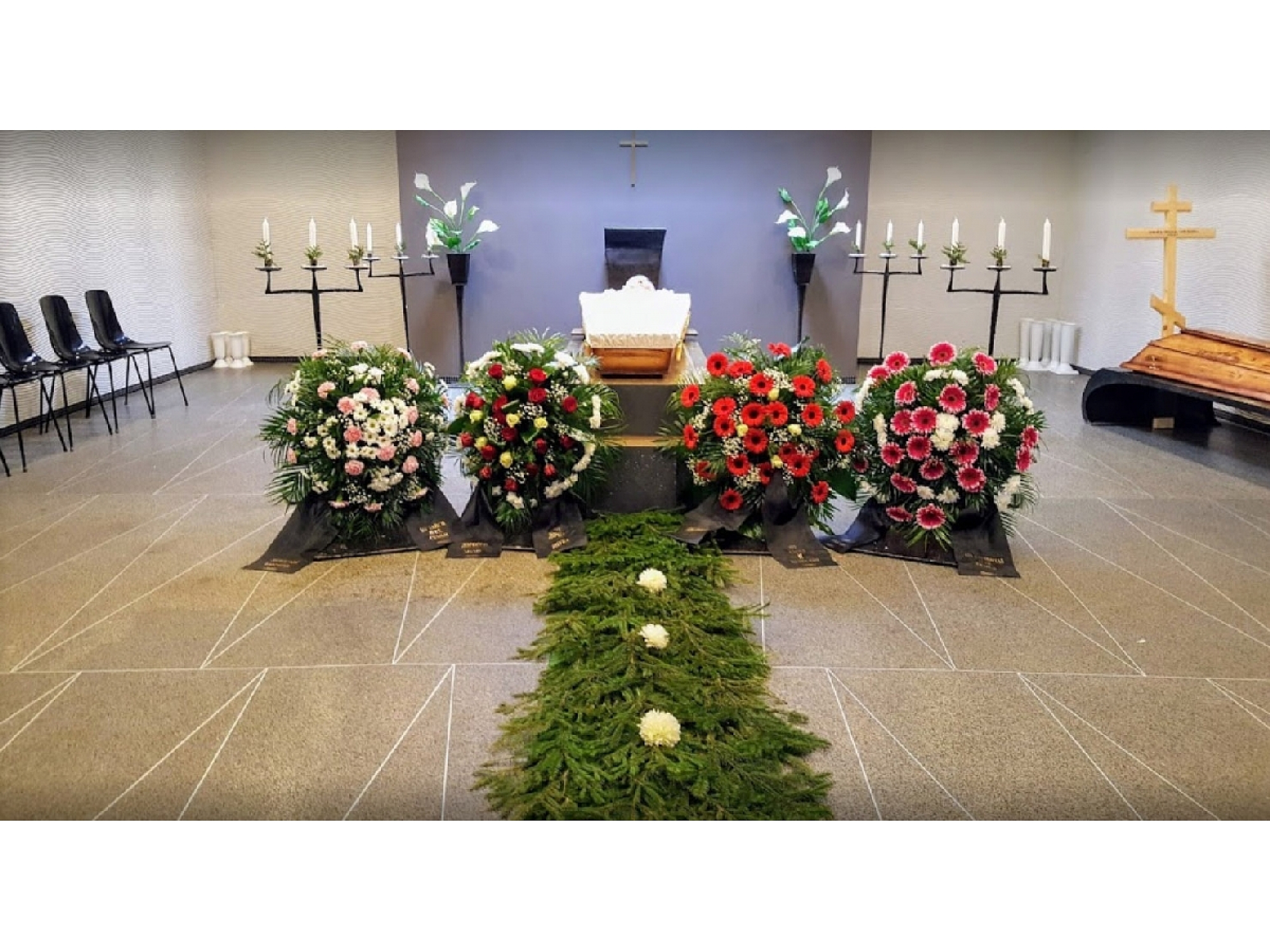 Apbedīšanas pakalpojumi, Apbedīšana, Bēres, Bēru organizēšana, Bēru vadīšana, Bēru ceremonijas organizēšana, Bēru ceremonijas vadīšana, Sēru ceremonijas organizēšana, Izvadīšana, Mirušā izvadīšana, Bēru izvadīšana, Nelaiķa transportēšana no mājām, slimnīcas vai pansionāta, Mirušā transportēšana, Mirušā transports, Mirušā transportēšana no ārzemēm, Mirušā transportēšana uz ārzemēm, Katafalks, Transporta pakalpojumi, Autobusu un mikroautobusu noma, Mirušā uzglabāšana morgā, Morgs, Morga pakalpojumi, Mirušā sagatavošana izvadīšanai, Mirušā sagatavošana, Grimēšana, Skūšana, Ģērbšana, Mirušā apģērbšana, Iezārkošana, Mirušā iezārkošana, Sanitārie pakalpojumi, Izziņas par nāves cēloni saņemšana, Miršanas apliecības saņemšana, Miršanas apliecība, Dokumentu noformēšana, Bēru dokumentu noformēšana, Mirušā dokumentu noformēšana, Apbedīšanas dokumentu noformēšana, Apbedīšanas pabalsta saņemšana, Apbedīšanas pabalsta noformēšana, Apbedīšanas pabalsts, Apbedīšanas pabalsta saņemšana VSAA, Sociālā pabalsta kārtošana ar pašvaldības sociālo dienestu, Kapsētu pakalpojumi, Kapsētas pakalpojumi, Bēru dienas un laika saskaņošana kapsētās, Kapa vietas sagatavošana, Kapa sagatavošana, Kapa bedres rakšana, Kapa bedres pušķošana, Kaprači, Urnas apbedīšana kapsētā, Urnas apbedīšana ar vai bez ceremonijas, Kremācija, Kremācijas pakalpojumi, Kremācijas organizēšana, Kremācijas pakalpojumu pieteikšana un apmaksa, Pārapbedīšana, Ekshumācija, Apbedīšanas piederumi, Zārki, Bēru zārki, Pulēta koka zārki, Dažādi uz vietas darbnīcā drapēti zārki, Koka krusti, Bēru krusti, Kapu krusti, Dažādu konfesiju krusti (ozols, osis, priede), Konfesiju krusti, Krusti, Urnas, Segas, Tautiskās segas, Dažādu krāsu un rakstu segas, Sveces, Ziedi, Bēru ziedi, Bēru pušķi, Vainagi, Bēru vainagi, Mūzika, Laicīgie runātāji, Reliģisko konfesiju mācītāji, Zārka nesēju pakalpojumi, Kvalificēta aģenta pakalpojumi, Akmens apstrāde, Kapu pieminekļi, Kapu pieminekļi Liepājā, Kapu pieminekļi Kurzemē, Kapu pieminekļu gravēšana, Akmens gravēšana, Gravējumi akmenī, Portreta gravēšana akmenī, Granīta krusti, Akmens vāzes, Kapu apmales, Kapu labiekārtošana, Kapsētas labiekārtošana, Kapsētu un kapu kopšana, Liepājas apbedīšanas birojs, Apbedīšanas birojs, Apbedīšanas pakalpojumu serviss, Apbedīšanas birojs Liepājā, Apbedīšana Liepājā