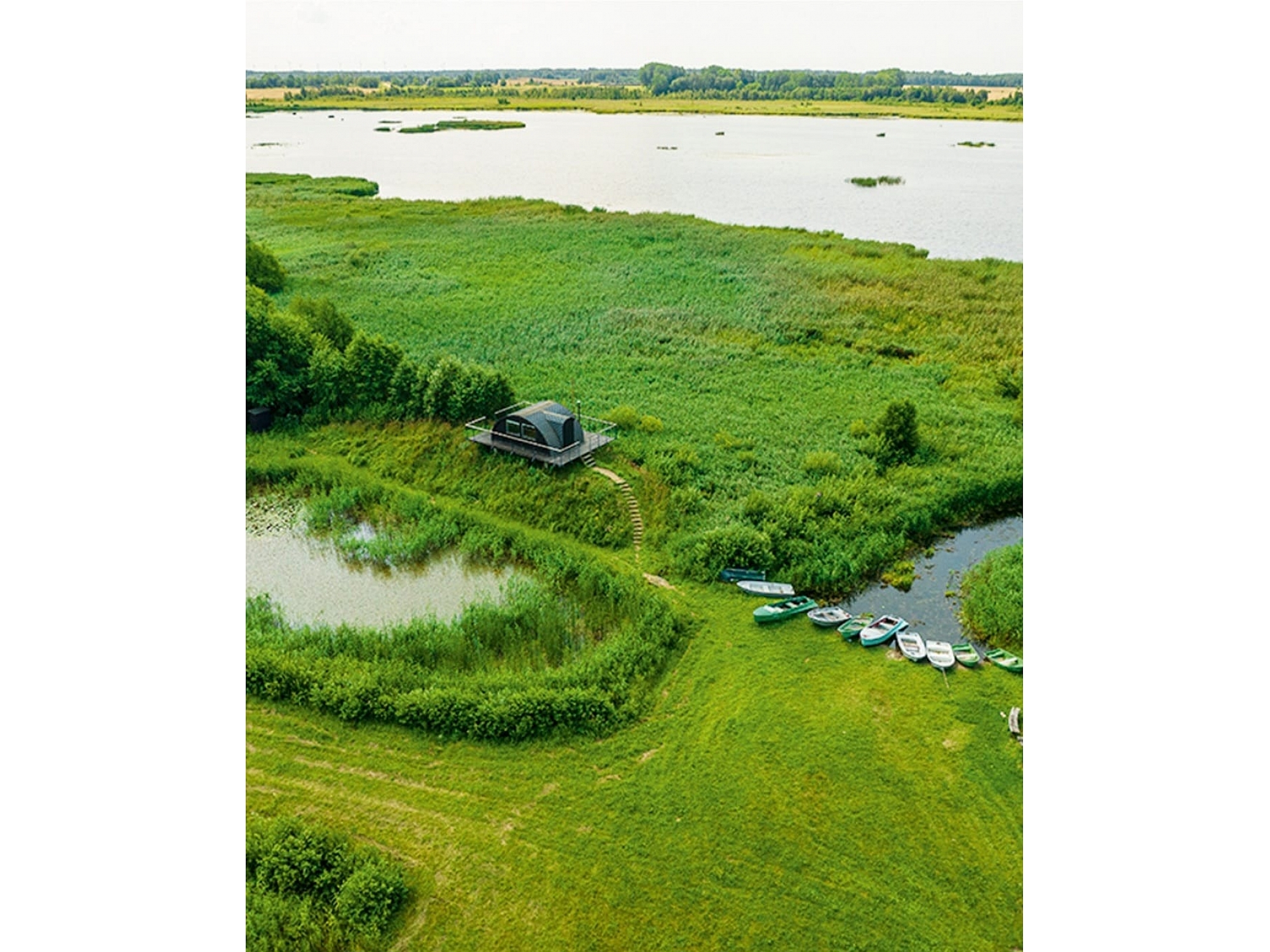 Dabas mīļotājiem pieejamas nakšņošanas iespējas mājīgā namiņā ar skatu platformu. Šeit var baudīt putnu dziesmas, mieru un gleznainus saulrietus, radot neaizmirstamu atpūtas pieredzi.