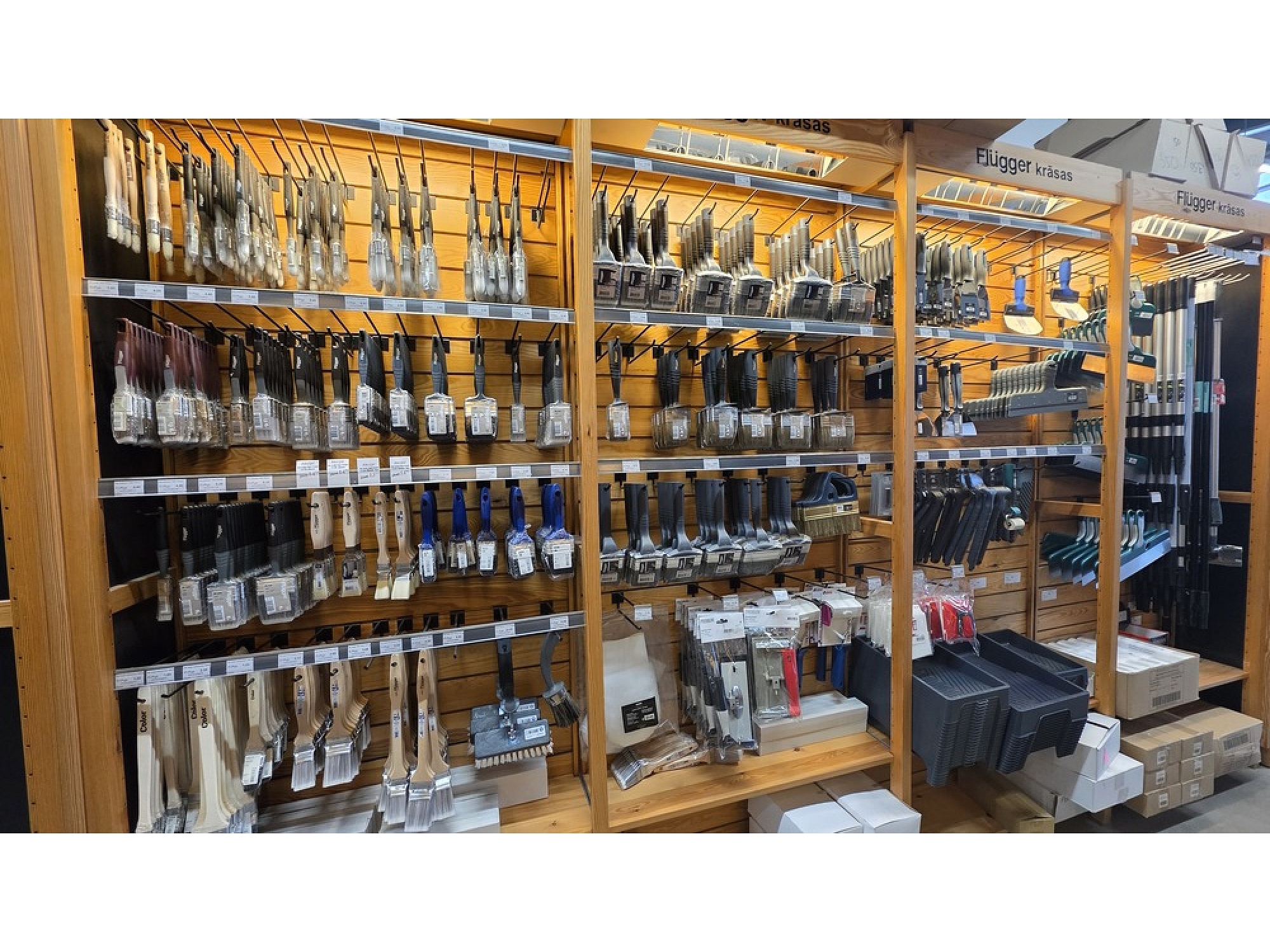 Krāsas sienām un griestiem, krāsas metālam un kokam, fasādes krāsas, gruntis un gruntskrāsas, eļļas, lakas un beices, špakteļtepes, hermētiķi, līmes, krāsotāju instrumenti, krāsotāju apģērbs