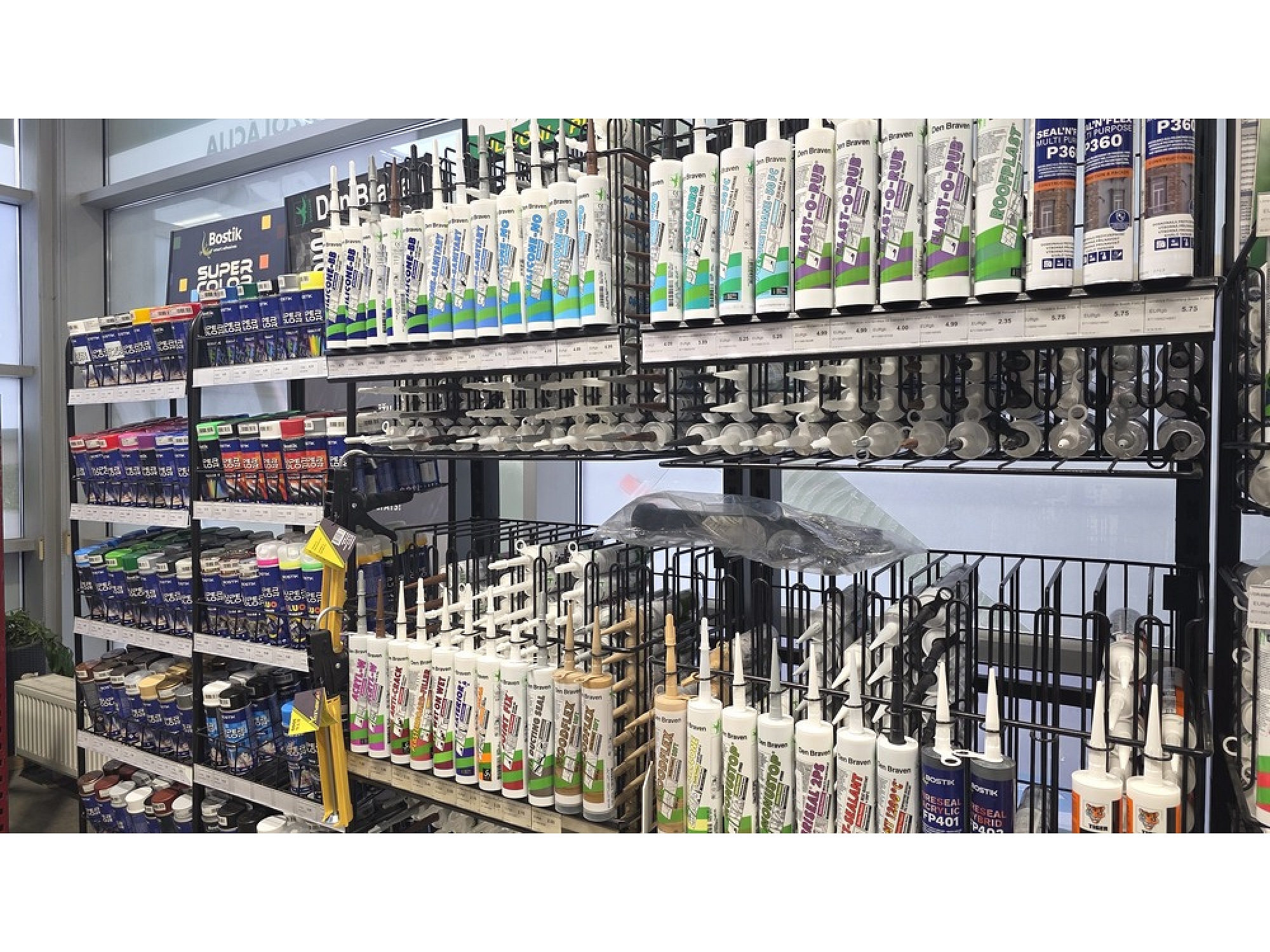 Montāžas putas, hermētiķi, līmes, blīvmateriāli, celtniecības plēves, krāsas, mastikas, putu pistoles, instrumenti