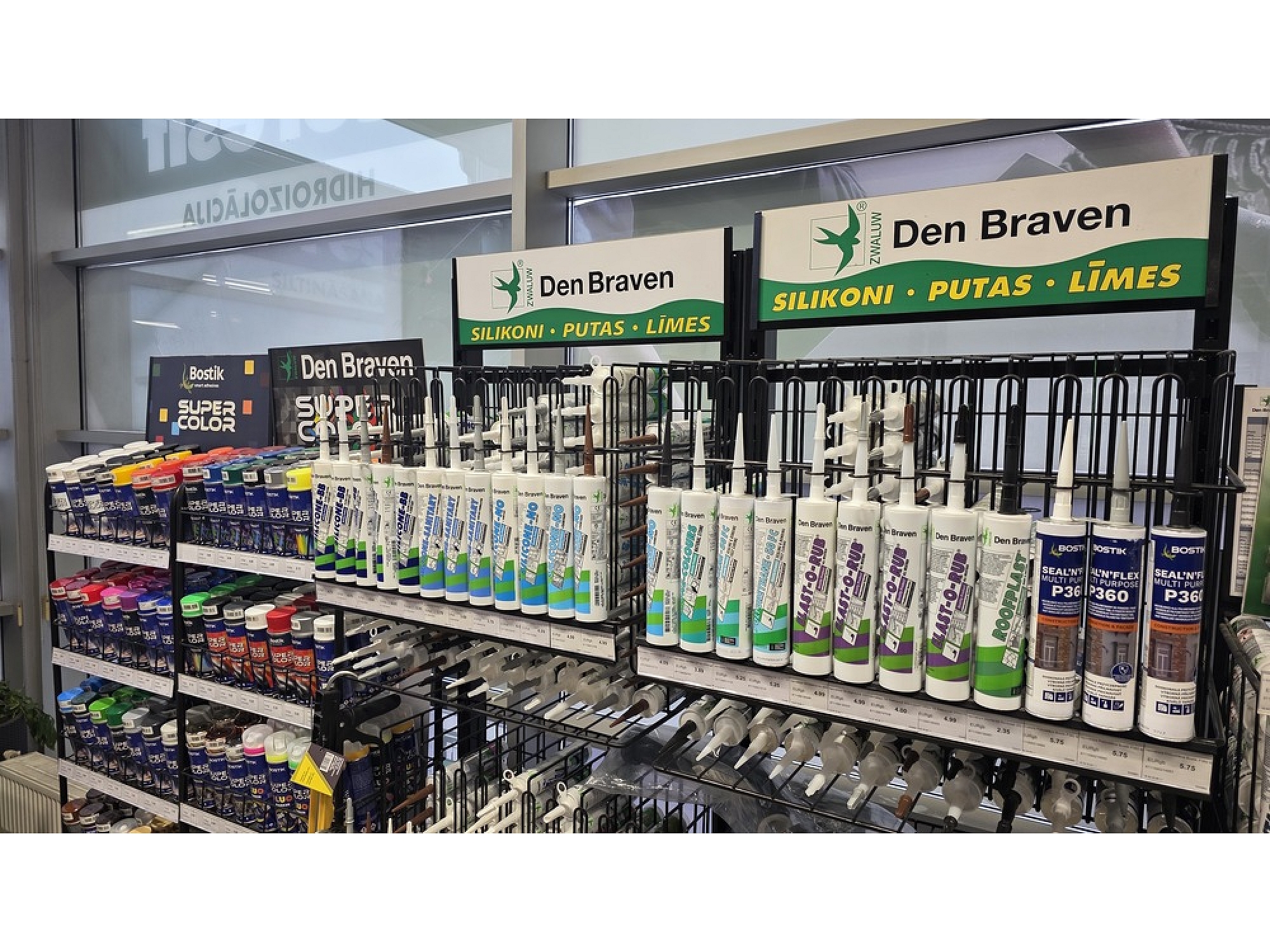 Emulsijas krāsas, krāsas tonēšanai, fasādes krāsas, lakas, līmes, gruntis, hermētiķi, līmes, špakteles, dekoratīvie apmetumi, koka virsmu apstrādes līdzekļi