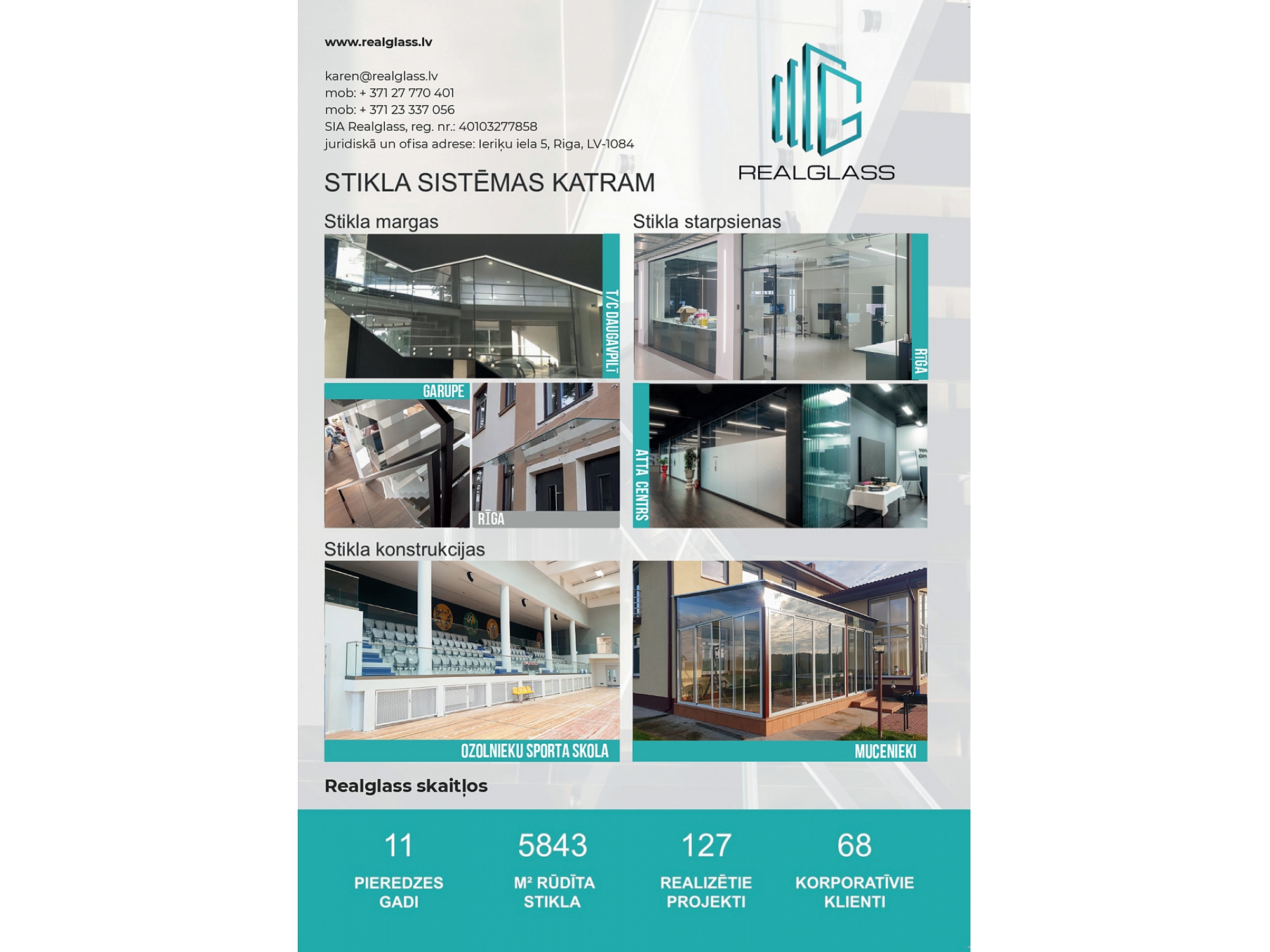 "RealGlass" ir profesionāls rūdīta stikla konstrukciju ražotājs un uzstādītājs Latvijā. Mēs piedāvājam augstas kvalitātes, estētiskus un funkcionālus stikla risinājumus dažāda mēroga un sarežģītības objektiem – sākot no privātmājām un birojiem līdz tirdzniecības, konferenču un vēsturiskiem objektiem.