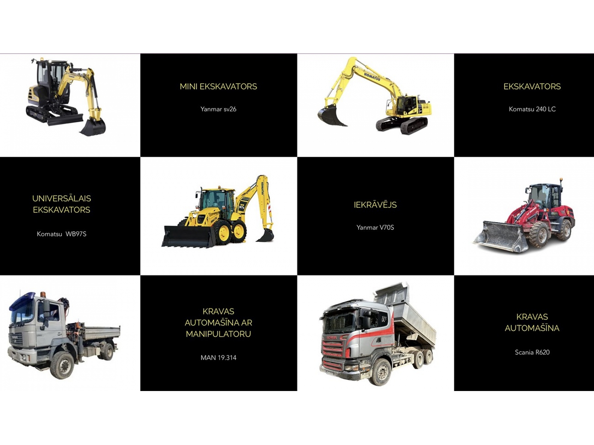 - Pašizgāzēju, kravas automašīnu un manipulatoru pakalpojumi;