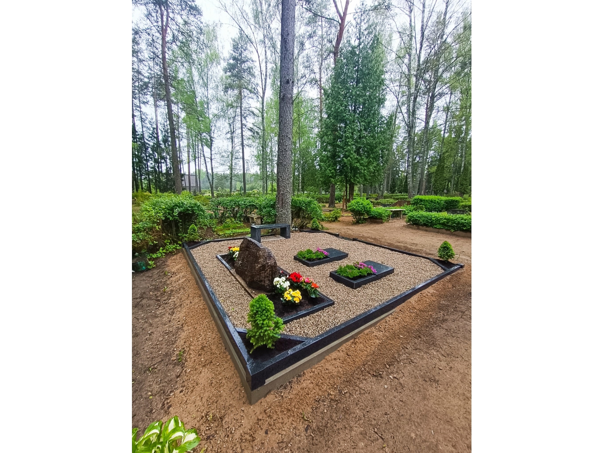 granīta kapakmeņu izgatavošanu, kapu pieminekļus, kapu apmales un soliņus, gravējumus akmenī, kā arī pilnu kapu laukumu labiekārtošanu.