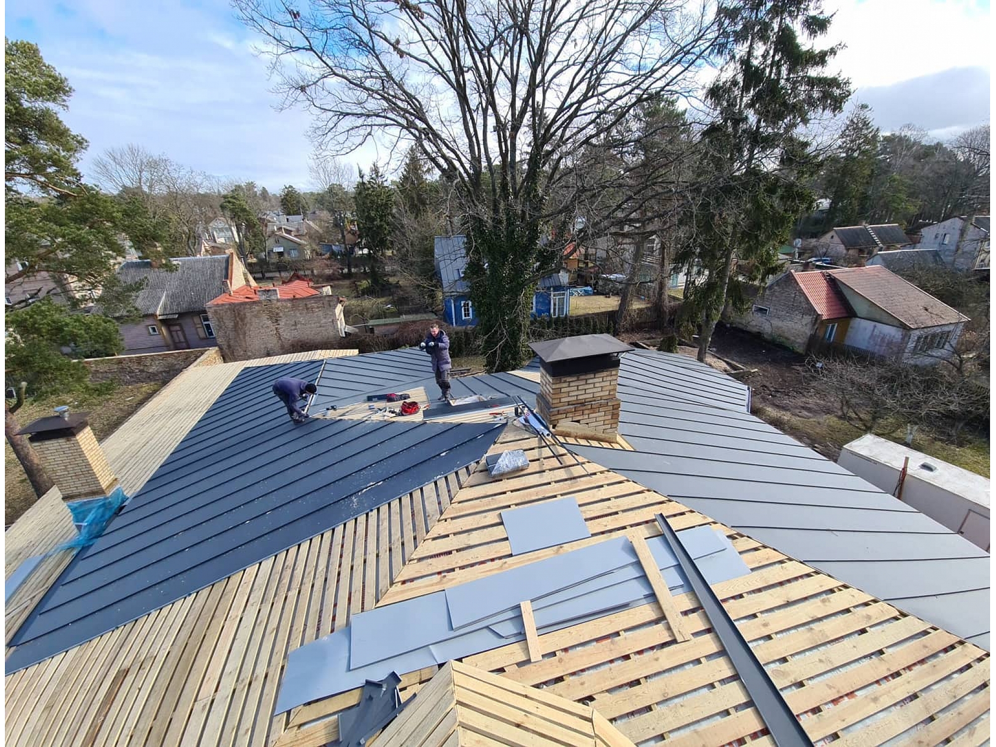 Uzņēmums veic jumta segumu montāžu, jumtu remontu, koka konstrukciju izbūvi, skārdnieka darbus, jumta hidroizolāciju, noteksistēmu montāžu un drošības elementu uzstādīšanu būvniecības projektiem.