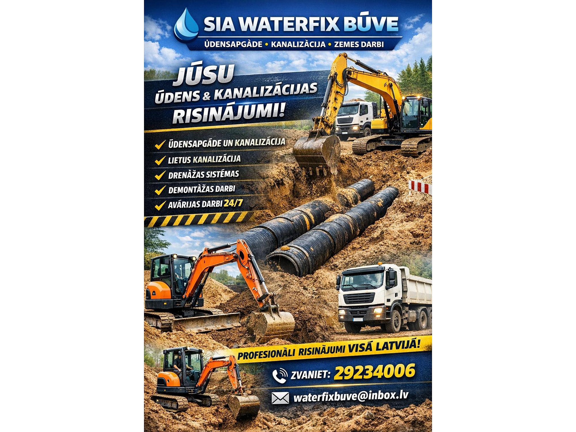 "Waterfix Būve", SIA ir inženierkomunikāciju būvniecības uzņēmums, kas specializējas ūdensapgādes un kanalizācijas risinājumos privātiem un komerciāliem objektiem. Uzņēmums nodrošina pilna cikla pieeju – no sākotnējās konsultācijas un tehniskā risinājuma izvēles līdz kvalitatīvai izbūvei un sistēmu nodošanai ekspluatācijā.