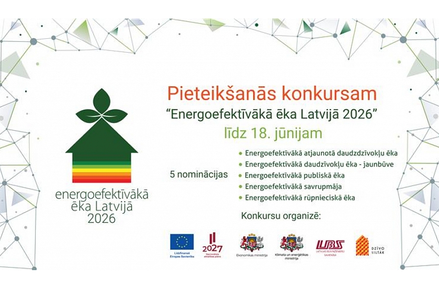 Konkursa „Energoefektīvākā ēka Latvijā 2026” nolikums publicēts konkursa tīmekļa vietnē www.energoefektivakaeka.lv. Pieteikumus konkursam „Energoefektīvākā ēka Latvijā 2026” aicinām iesniegt līdz 2026. gada 18. jūnijam, nosūtot tos elektroniski uz e-pasta adresi dzivosiltak@em.gov.lv. Plānots, ka līdz šā gada augusta beigām konkursa žūrija pieņems lēmumu par ēkām, kas tiks virzītas konkursa otrās kārtas vērtēšanai – ēku apsekošanai klātienē. Savukārt šā gada konkursa laureātu apbalvošana plānota septembrī.
